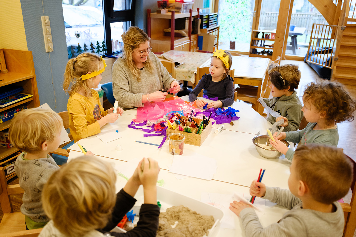 Als Partner aller an der Erziehung beteiligten Personen fördern wir den Austausch untereinander. Regelmäßige Familien- und Elterngespräche, sowie der tägliche Austausch sind uns selbstverständlich.
